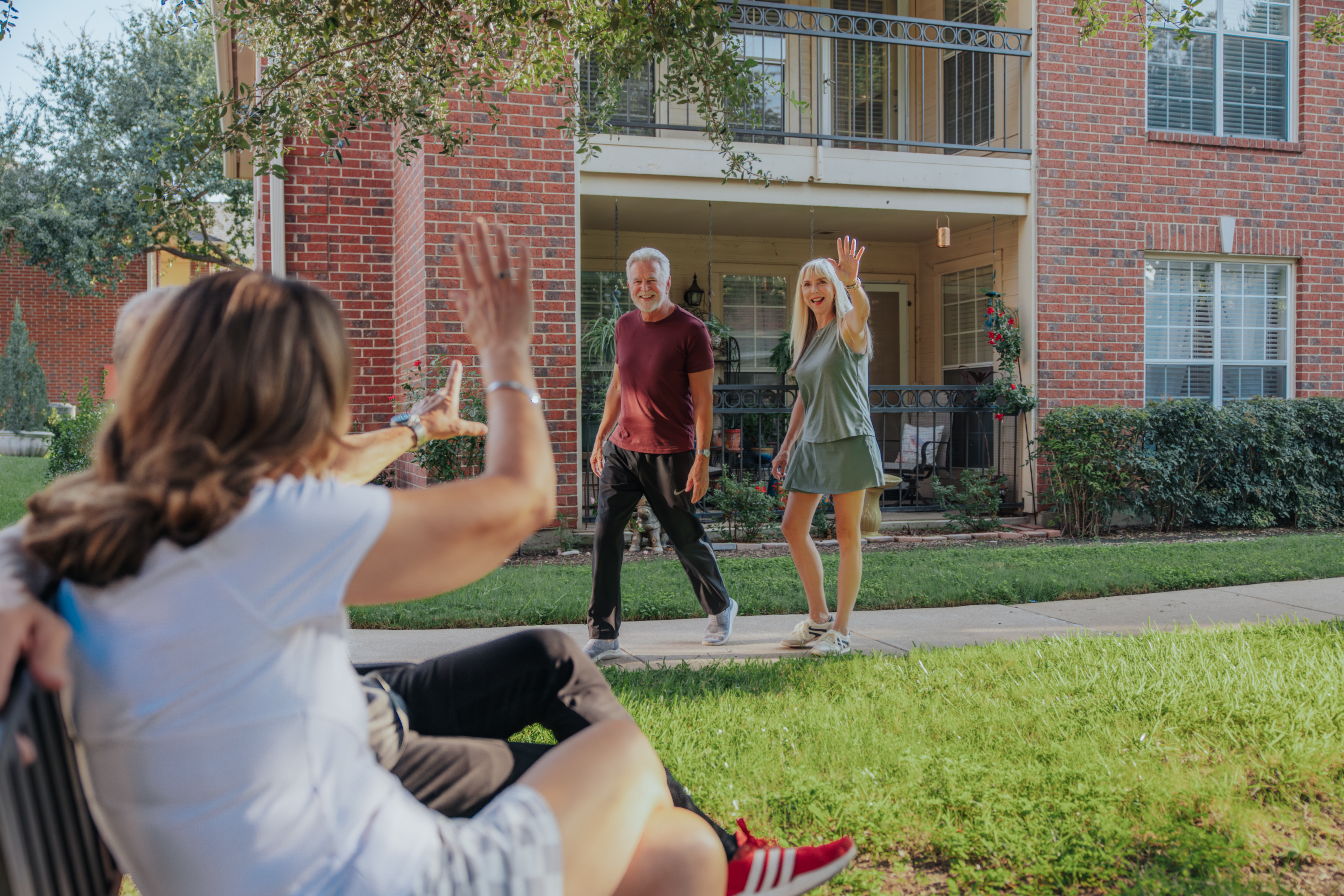 Sometimes the simplest approach is also the most effective. Saying hello while enjoying your patio, walking through the garden paths, or entering a shared community space can open the door to friendly conversation.